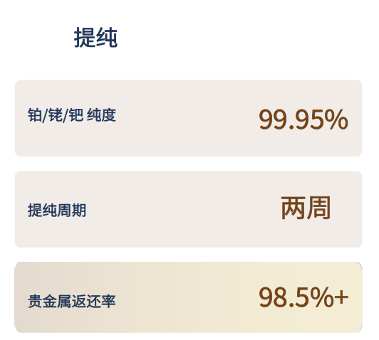 工艺优势:采用环保湿法工艺;回收率高,贵金属损耗低;减少环境污染。