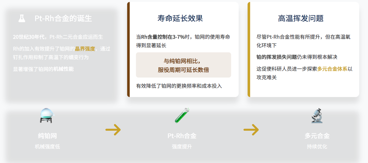 Pd的引入带来多重优势:降低了原料成本,协同其他元素进一步抑制高温挥发损失,提升铂网的经济性和稳定性。