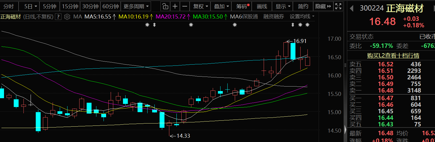 1月15日,正海磁材股价出现上涨,截至15日收盘,正海磁材涨0.18%,报16.48元/股。