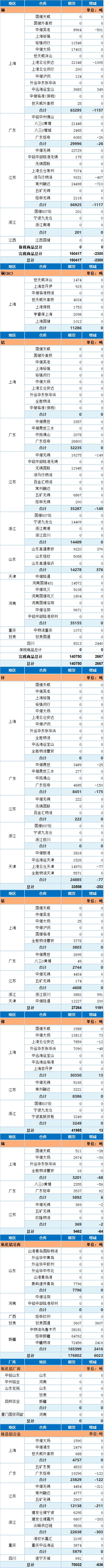 SMM网讯:以下为上海期货交易所1月16日金属库存日报: