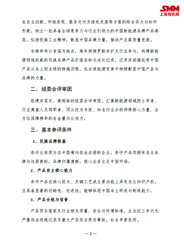 此刻,我们向全行业发出诚挚邀请:如果您的企业深耕民族品牌、手握自主创新核心技术、拥有经得起市场检验的优质产品,不妨把握此次机遇,申报 “2026SMM新能源民族品牌榜”,让民族产品的实力被看见,让中国品牌的光芒照向全球!