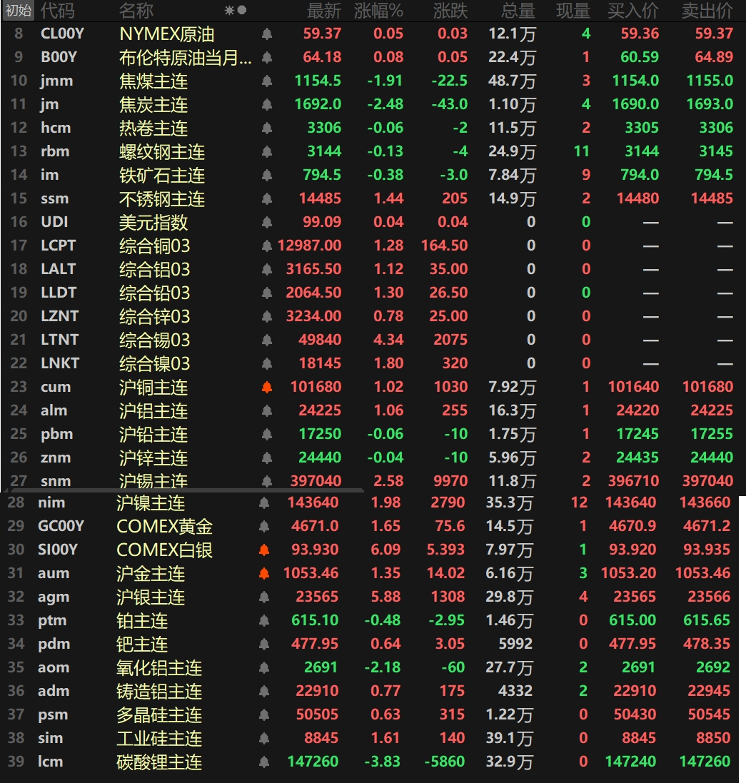 金属市场方面: