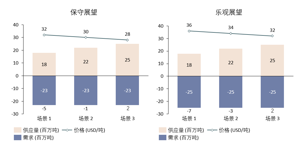 | 需求 | 2300万至2500万吨 | 支持部分一体化冶炼厂重启;18-24个月的再平衡时间 |