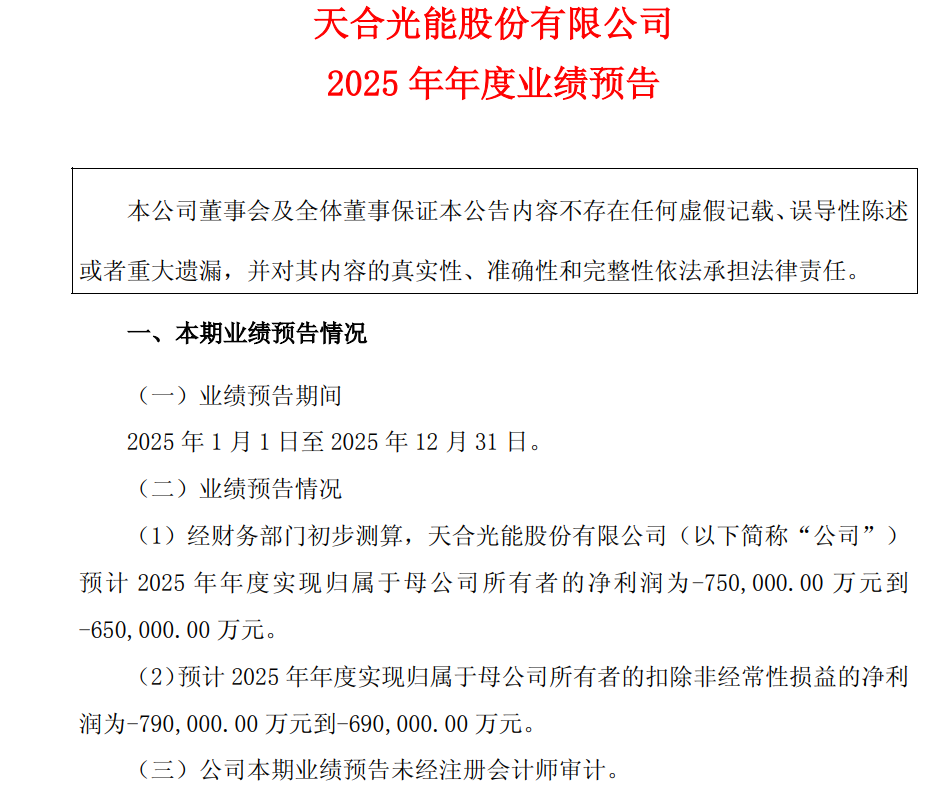 具体来看其净利润下滑的原因,天合光能表示,报告期内,光伏行业仍面临阶段性供需失衡,产业链各环节开工率处于低位,市场竞争进一步加剧,叠加国际贸易保护政策持续影响,上半年光伏产品价格较去年同期普遍承压;尽管下半年光伏产品价格在行业反内卷工作推进下逐步提升,然而受硅料、银浆等关键原材料成本快速上涨的影响,公司组件业务全年盈利能力较上年同期有所下滑,2025 年度公司经营业绩仍然亏损。同时基于谨慎性原则,公司对出现减值迹象的长期资产进行减值测试,经过审慎评估将按照企业会计准则计提资产减值准备,对业绩有一定影响。