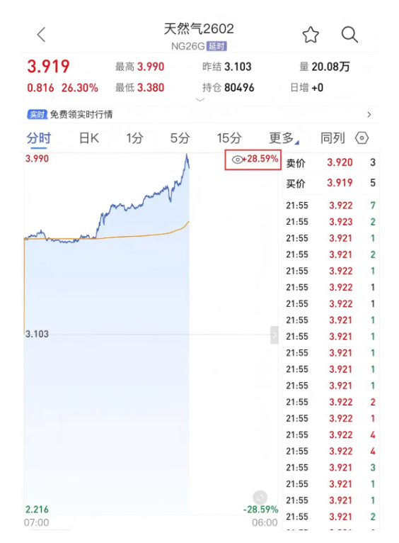 20日晚,海外天然气价格暴涨。美国天然气期货近月合约一度涨逾28%。