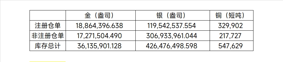 2026年1月20日COMEX金属库存