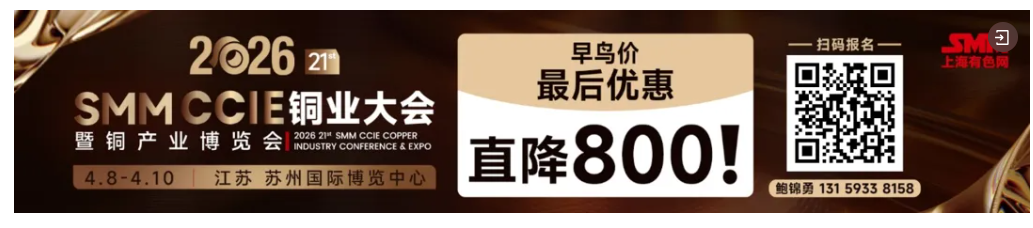 SMM CCIE 2026(第二十一届)铜业大会暨铜产业博览会 即将于2026年4月8日~10日,在江苏·苏州国际博览中心召开。