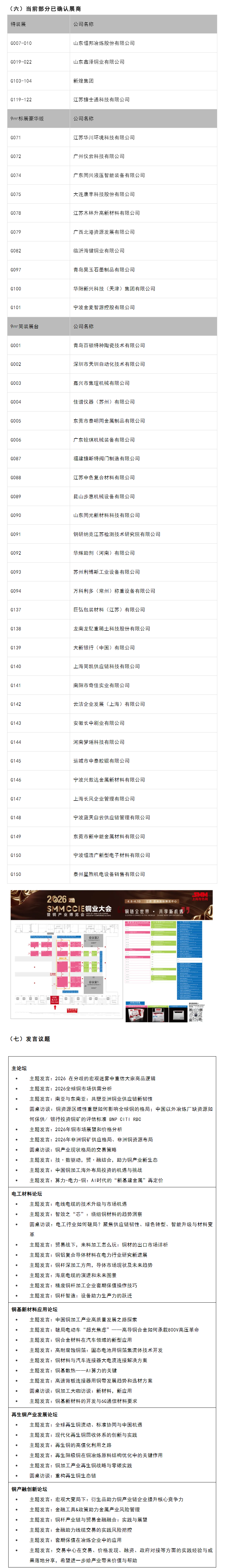 本届大会采取特色展+会形式,设5大专场论坛,将有60余位行业嘉宾发表演讲,是每一个铜行业人员都不可错过的行业盛会。