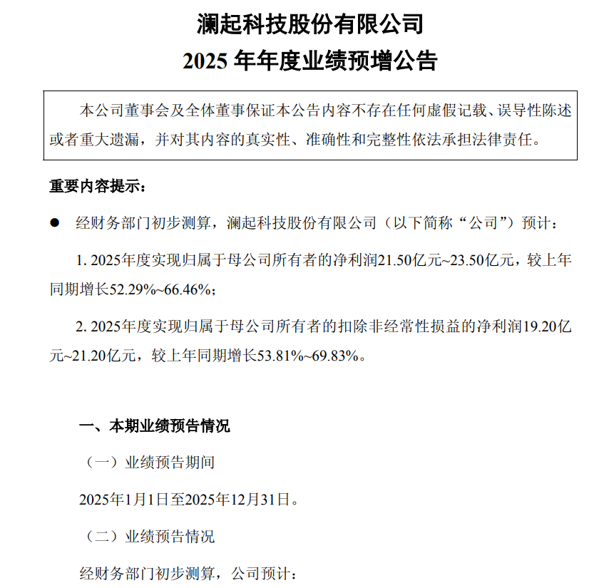 而存储芯片行业持续火爆的境况,在国内产业链相关企业的业绩预告中也展现得淋漓尽致。澜起科技在1月17日发布2025年业绩预增公告,其中提到,预计公司2025年归属于上市公司股东的净利润在21.50亿元~23.50亿元,较上年同期(法定披露数据)增长52.29%~66.46%。