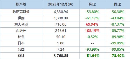 以下为根据中国海关总署官网数据整理的2025年12月精炼锌进口分项数据一览表: