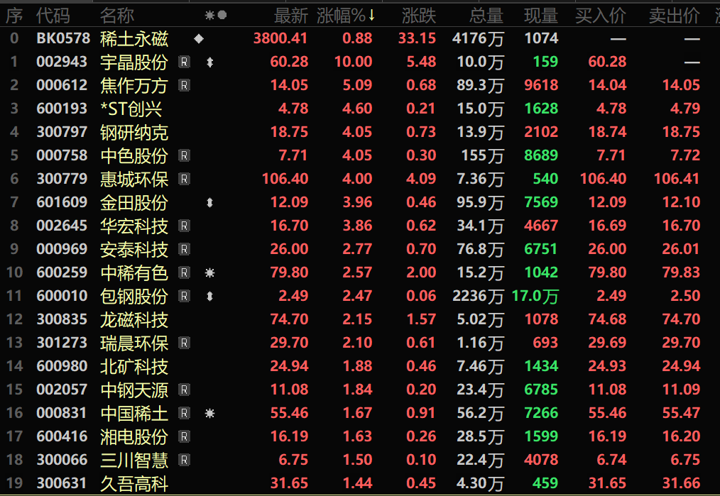 华西证券研报显示:全球稀土资源高度集中,且中国稀土产储均位于全球第一。2025年11月22日,商务部与海关总署联合公告,宣布自即日起至2026年11月10日,暂停实施涉及超硬材料、稀土相关物项、锂电池及人造石墨负极材料的6项出口管制措施,中美关系有所缓和。美国政府积极重建本国稀土产业链,其中美国磁铁制造商eVAC近日从其南卡罗来纳州Sumter工厂运送了首批钕铁硼永磁体,但短期看全球稀土永磁体生产仍高度集中于中国,且考虑到海外产能释放仍需时间且我国新增产能规模,我国仍是全球唯一具备稀土全产业链各类产品生产能力的国家,且美西方稀土产业链的整体规模远低于我国,其产业链均不完整并存在明显短板。且8月22日发布的《稀土开采和稀土冶炼分离总量调控管理暂行办法》或引发市场对供给侧收紧的预期。后续需等待我国政策的进一步指引。