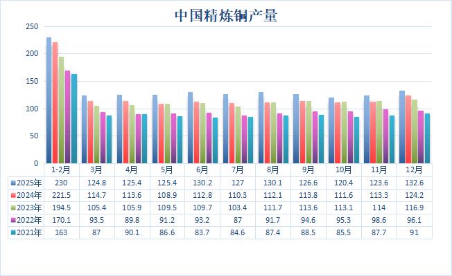 国家统计局发布报告显示,中国12月精炼铜(电解铜)产量为132.6万吨,同比增加9.1%。1-12月累计产量为1,472.0万吨,同比增长10.4%。虽然12月有部分冶炼厂检修,但实际影响产量有限,而前期检修的冶炼厂陆续复产,另外,由于铜价持续拉升,使得精废价差大幅扩大,废产阳极铜的产量增加,冶炼厂的原料得以有效补充,不少冶炼厂的产量均出现环比上升,12月铜产量环比增加。进入1月,SMM表示,将有5家冶炼厂有检修计划,涉及粗炼产能105万吨,预计影响量约为1.9万吨。往年不少冶炼厂有开门红的习惯,但今年由于铜精矿供应紧张,仅个别冶炼厂仍保持该习惯。另外,1月原计划是有2家冶炼厂要投产,但因各种原因影响,仅一家能按时投产,另外一家要延后至3月底4月初。