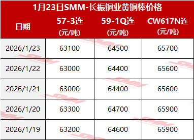 【SMM价格】2026年1月23日长振黄铜棒价格