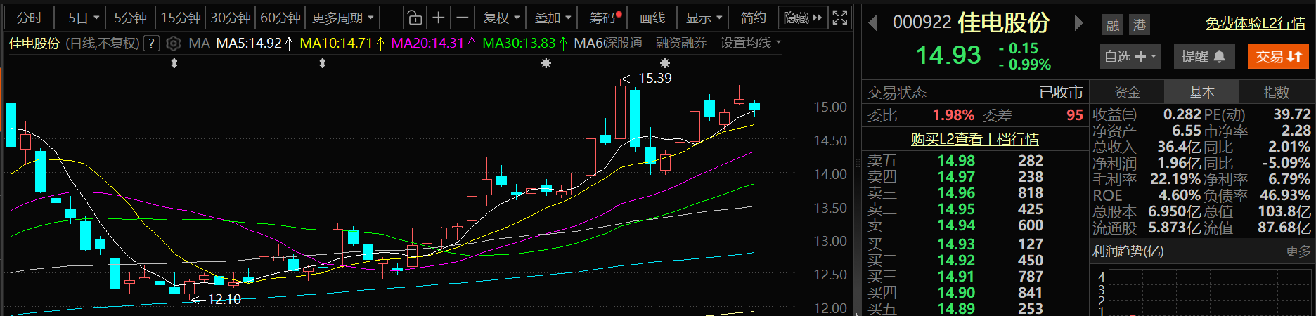 1月23日,佳电股份股价下跌,截至23日收盘,佳电股份跌0.99%,报14.93元/股。