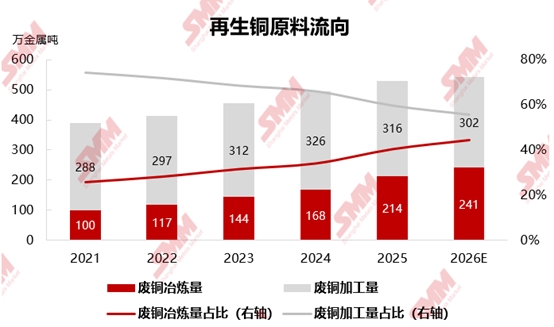 消费结构同时也正在发生深刻转变,再生铜原料流向冶炼端的比例持续提升。据SMM统计,2025年国内再生铜原料冶炼量达214万金属吨,占总消费量的40.3%;而加工量则降至316.4万金属吨,占比59.7%。这一变化主要源于两大动因:其一,铜精矿加工费长期处于低位甚至负数,迫使冶炼企业加大废产阳极板的使用以缓解成本压力;其二,“反向开票”政策的推行与“770号通知”的出台,虽然长期利于行业票据规范化,但短期内显著增加了中小型再生铜加工企业的税务成本,致使大量企业暂停生产、观望政策,原料因此更多流向执行长协、生产稳定的废产阳极板及冶炼企业。
