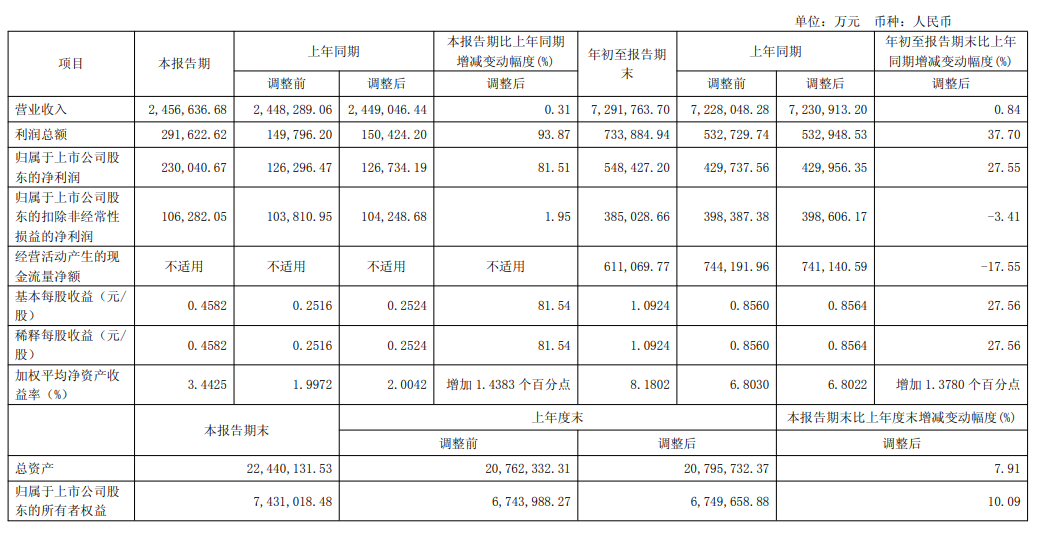特变电工此前发布2025年三季报显示:公司第三季度营业收入245.66亿元,同比增长0.31%(调整后);净利润23亿元,同比增长81.51%(调整后)。2025年前三季度营业收入729.18亿元,同比增长0.84%(调整后);净利润54.84亿元,同比增长27.55%(调整后)。