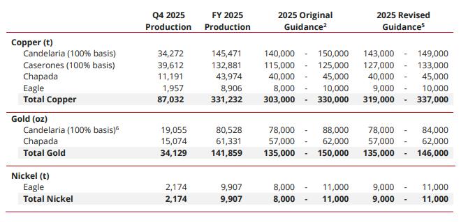 首席执行官Jack Lundin表示,该公司的短期和中期前景保持不变,预计矿山排序的变化将使2026年铜产量净增15,000吨,2027年增加约20,000吨。