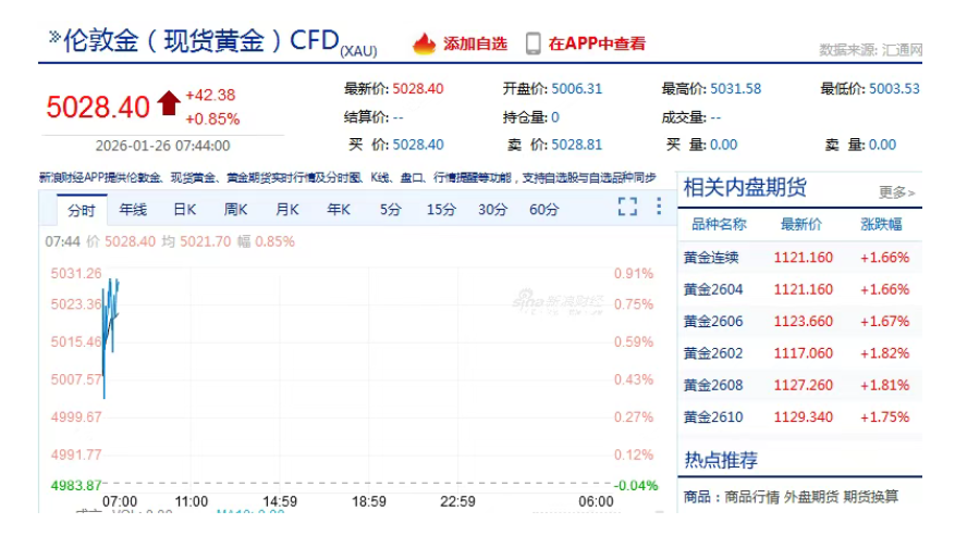 1月26日,现货黄金价格历史首次突破5000美元/盎司整数大关,距离其首次突破4000美元关口仅过去100余日。市场分析认为,各国央行加码购金、地缘紧张局势以及经济环境的不确定性等宏观因素是推动金价走高的原因。