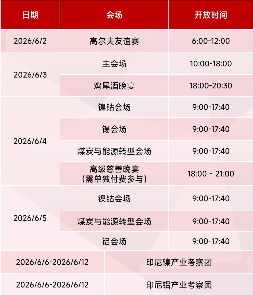 越早锁定,不仅意味着更低的参会成本,也意味着更早进入产业核心圈层,优先参与重点分会场与高质量商务对接。对关注资源端变化、布局新能源与关键金属机会的企业而言,现在报名,是兼顾性价比与确定性的唯一窗口期。