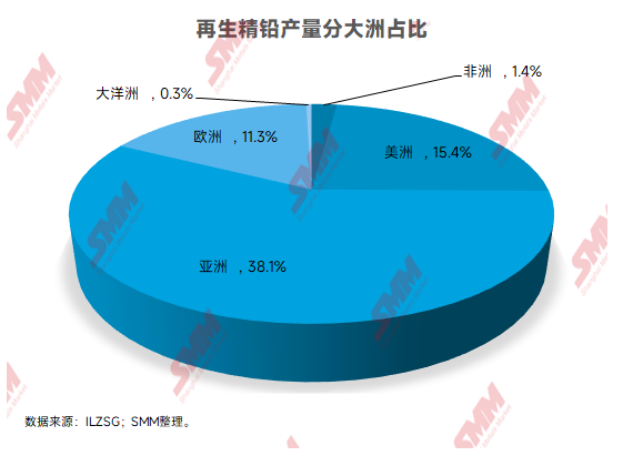 据ILZSG数据显示,全球再生精铅产量主要分布在亚洲、美洲和欧洲。