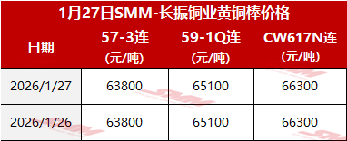 【SMM价格】2026年1月27日长振黄铜棒价格