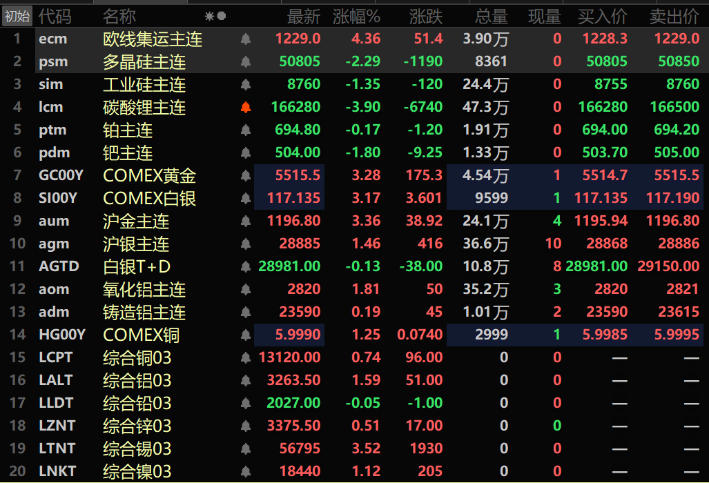 【上期所:调整镍、氧化铝、铅锌、不锈钢、黄金、白银等期货相关合约涨跌停板幅度和交易保证金】上期所发布通知,经研究决定,自2026年1月30日(星期五)收盘结算时起,涨跌停板幅度和交易保证金比例调整如下: 镍期货已上市合约的涨跌停板幅度调整为11%,套保持仓交易保证金比例调整为12%,一般持仓交易保证金比例调整为13%; 氧化铝、铅、锌期货已上市合约的涨跌停板幅度调整为9%,套保持仓交易保证金比例调整为10%,一般持仓交易保证金比例调整为11%; 不锈钢、铸造铝合金、螺纹钢、热轧卷板期货已上市合约的涨跌停板幅度调整为7%,套保持仓交易保证金比例调整为8%,一般持仓交易保证金比例调整为9%; 黄金期货AU2606、AU2608、AU2610、AU2612、AU2702合约涨跌停板幅度调整为16%,套保持仓交易保证金比例调整为17%,一般持仓交易保证金比例调整为18%; 白银期货AG2605、AG2606、AG2607、AG2608、AG2609、AG2610、AG2611、AG2612、AG2701合约涨跌停板幅度调整为16%,套保持仓交易保证金比例调整为17%,一般持仓交易保证金比例调整为18%。 如遇《上海期货交易所风险控制管理办法》第十三条规定情况,则在上述涨跌停板幅度、交易保证金比例基础上调整。 关于涨跌停板和交易保证金的其他事项按《上海期货交易所风险控制管理办法》及相关业务规则执行。》点击查看详情