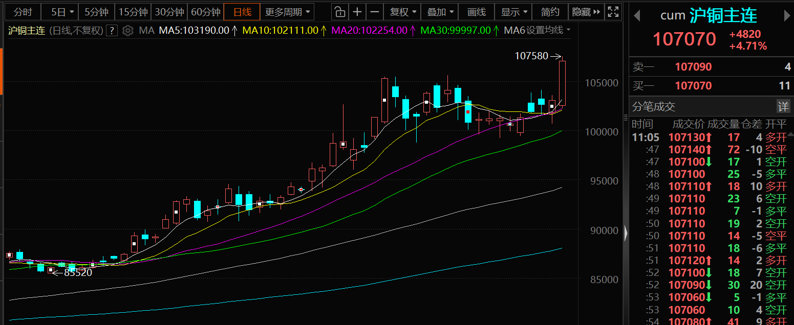 沪铜早间表现平淡,目前期价突然拉涨,主力合约涨幅超过4%,国际铜走势趋同。最近全球铜显性库存回升,但贵金属涨势如虹,所带来的资金外溢效应仍然存在,铜价易涨难跌。