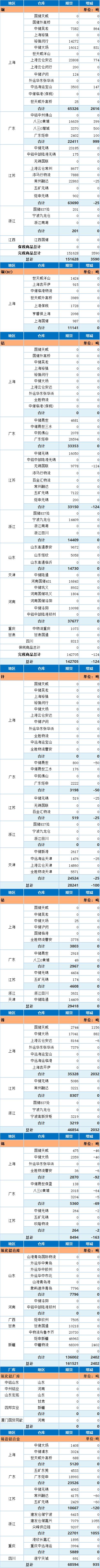 11月16日上海期货交易所金属库存日报