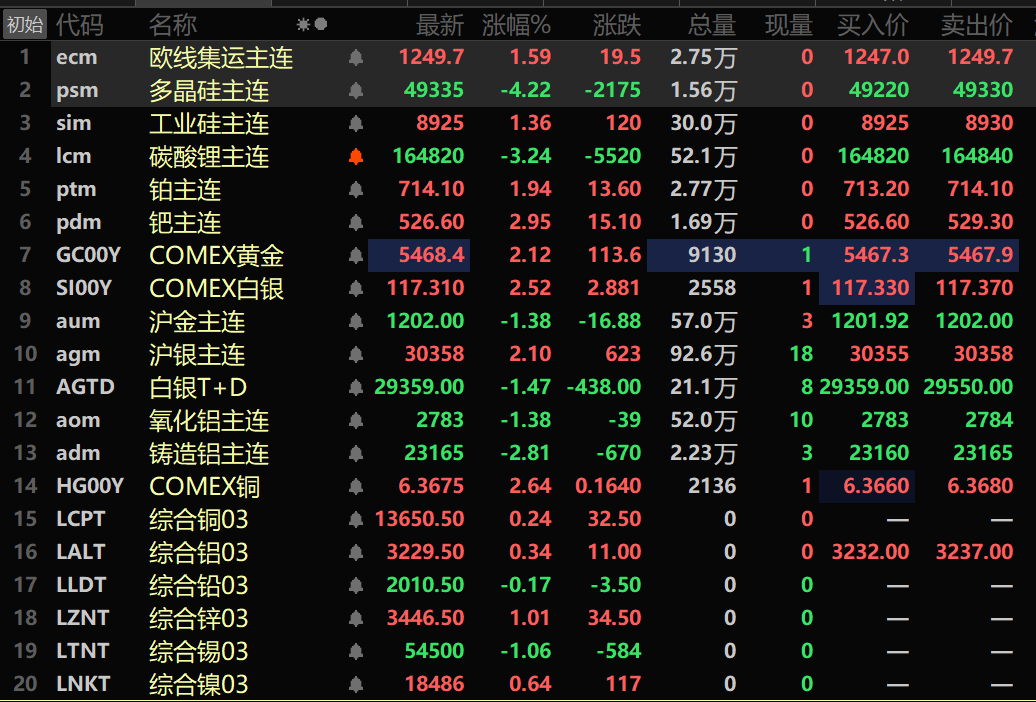 金属市场方面: