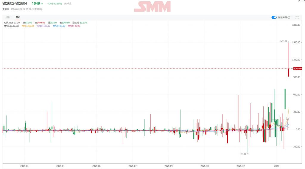 2026年1月最后一周,国内沪期银近月合约正经历罕见的挤仓行情,沪银2602-2604合约月差、沪银主力-TD基差均出现超预期扩大。尽管交易所多次上调后的保证金比例及持仓限制,但现货市场供应紧张的现状仍然点燃了期货市场套利热度。沪银当月2602合约最高刷出33337元/千克高位,截止1月29日,SMM1#银价格较1月初涨幅已达69%,这一涨幅创下了近年来白银单月涨幅的新高。