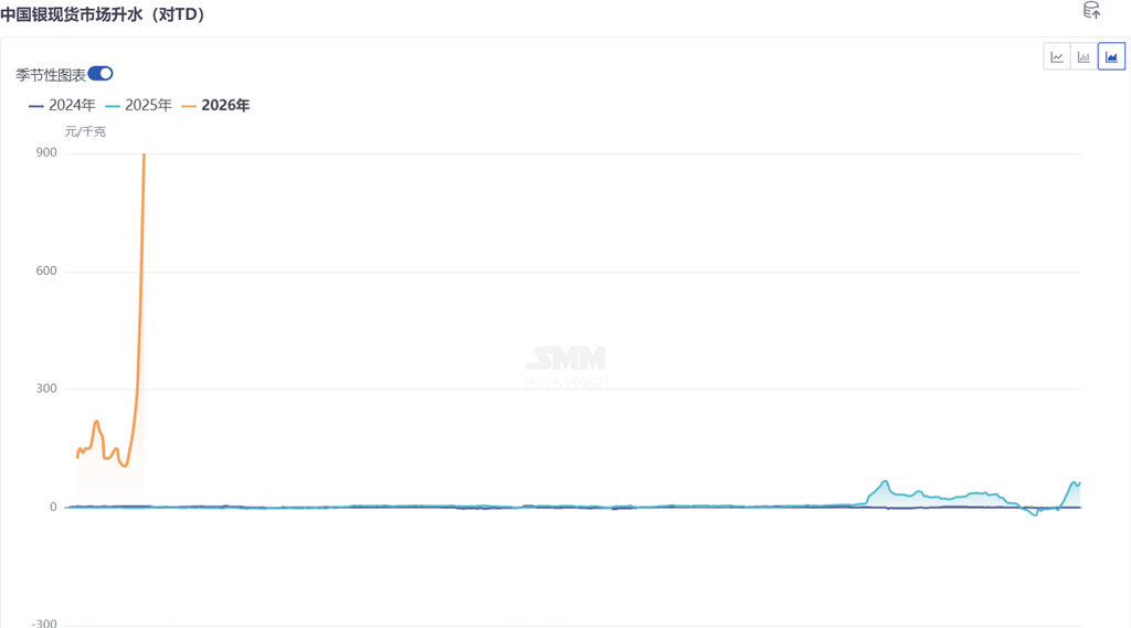 月差扩大的背后是期货市场空头面临巨大的实物交割压力,金交所递延费交收已持续24个交易日以“空付多”方向结算,某贸易商表示由于交易所中交卖的白银总量远小于交买的头寸,自己在金交所的多头头寸很难交买获得现货,因此也无法为下游客户报价发货,只能每日收取递延费并持续观望。短期内社会库存持续下滑、冶炼厂月底清仓结束后2月长单尚未交付、下游刚需备库等现实因素导致白银现货升水飙升。