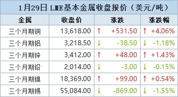 伦敦时间1月29日17:00(北京时间1月30日01:00),LME三个月期铜上涨531.5美元,或4.06%,收报每吨13,618.0美元。盘中一度飙升11%,触及每吨14,527.50美元的历史峰值。