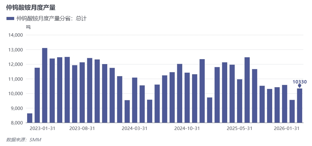 ②1月APT等冶炼行业开工率回升,加之部分新增产能有望投产,行业补库需求增加,加剧矿端供应紧张格局。根据SMM调研数据显示,1月份国内仲钨酸铵产量环比8%至10330吨附近,行业开工率回升至67%左右,企业对矿端需求增量为主,临近春节,国内冶炼企业多在节内维持正常生产,节前补库需求增加,带动矿端需求增量。