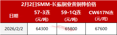【SMM价格】2026年2月2日长振黄铜棒价格