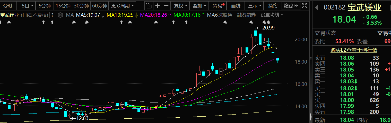 2月2日,伴随着股市的挑战,宝武镁业的股价也出现了下跌,截至2月2日10:40分,宝武镁业跌3.53%,报18.04元/股。
