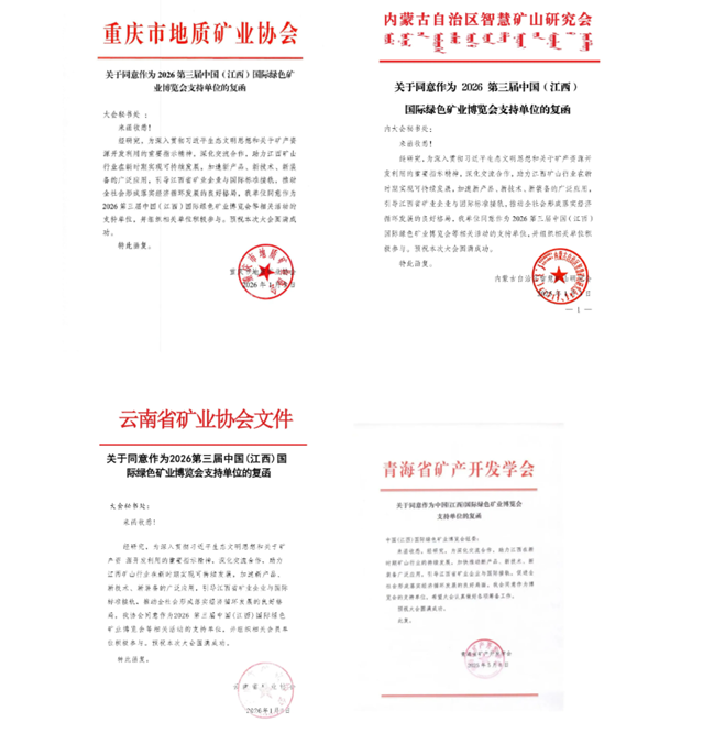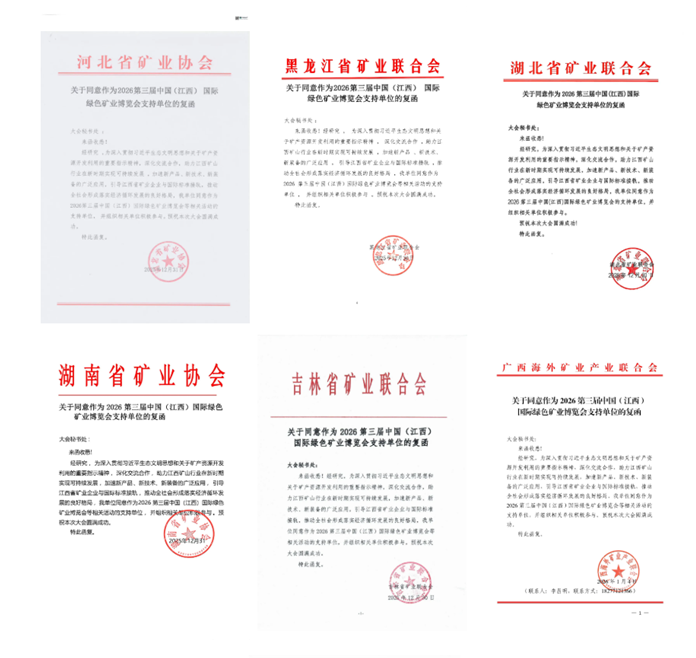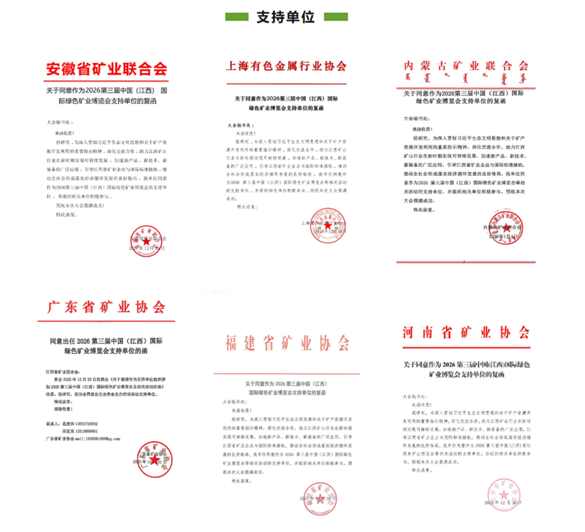我们坚信,在各行业协会的鼎力支持、全产业链企业的积极参与、社会各界的广泛关注下,2026第三届中国(江西)国际绿色矿业博览会必将成为一场规格高、影响广、实效强的国际矿业盛会,为推动全国绿色矿业转型升级、助力江西打造世界级矿业基地贡献重要力量!