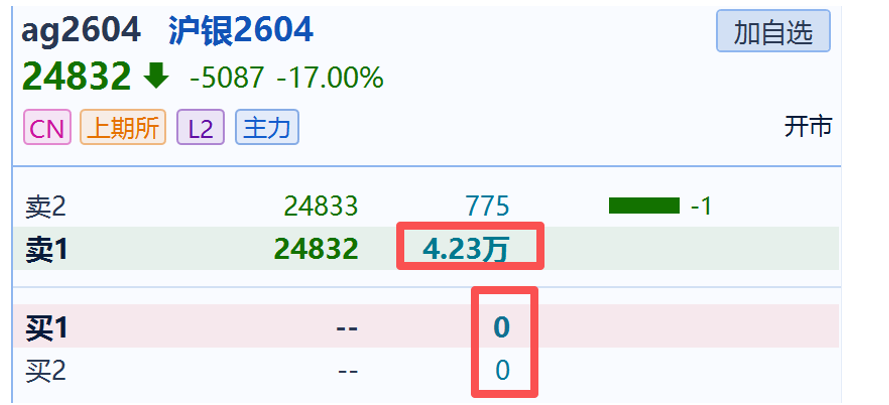 沪银主力Ag2604合约盘口巨大卖压