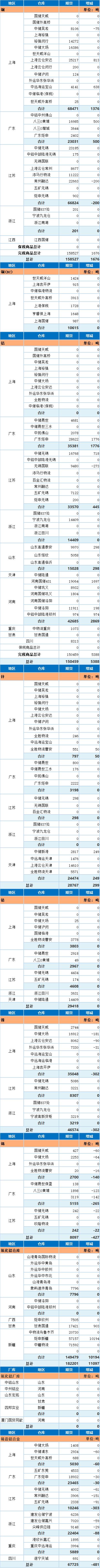 10月15日上海期货交易所金属库存日报