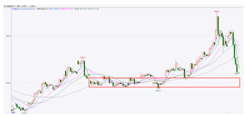 目前来看,短期原油市场关键的博弈点仍在伊朗局势的地缘走向,而中长期来看,供应过剩的压力或仍将是影响油价的核心因素。此外,短期油价的反弹幅度已经接近去年6月伊以冲突带来的风险溢价幅度,需注意承压风险。但如果地缘局势发生超预期情况,油价波动或仍将存在不确定性。后市可关注供应端变化,包括主要生产国产量政策及地缘对供应端的影响。盘面上看,油价快速下跌,小时级别下破多根均线,可参考下方震荡区间附近的支撑作用。