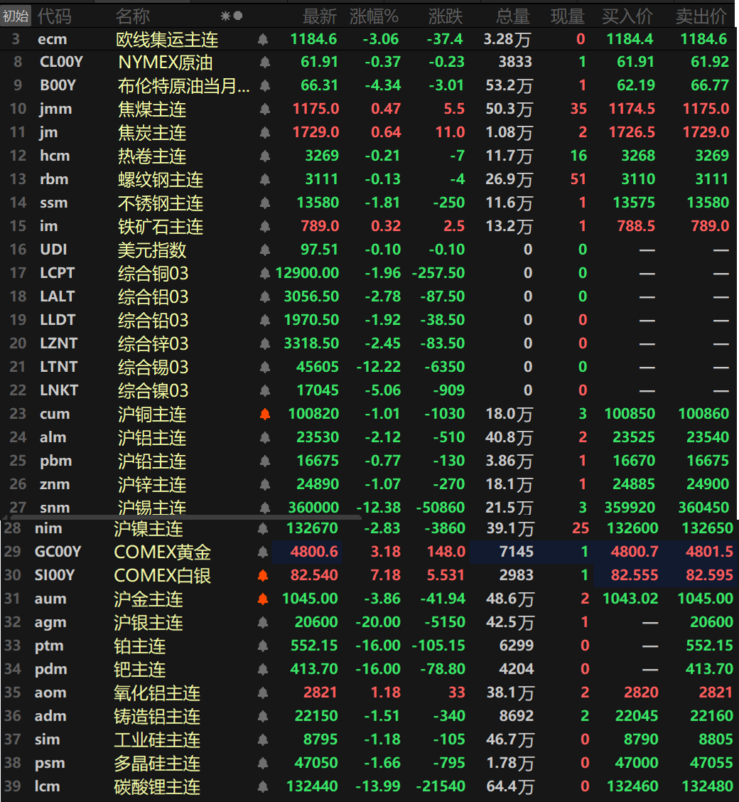 隔夜黑色系方面多下跌,不锈钢跌1.81%,铁矿涨0.32%。其余品种跌幅均在1%以内。双焦方面,焦煤涨0.47%,焦炭涨0.64%。