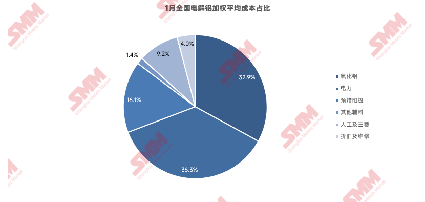 电价方面,进入枯水期,1月云南、四川等水电占比较高的省份电价明显提高,全国电解铝平均电力成本上移。进入2026年2月,电力价格预计趋稳运行为主,电解铝电力成本预计持稳。