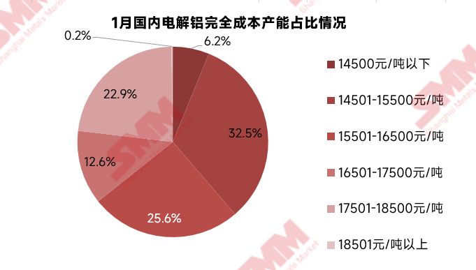 总体而言,2026年2月SMM预计国内电解铝行业加权平均含税完全成本预计环比下降,平均值在15,700-16,100元/吨附近。