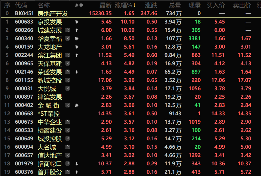 中共中央、国务院批复《现代化首都都市圈空间协同规划(2023-2035 年)》;上海启动收购二手住房用于保障性租赁住房工作等等重磅政策利好集中发酵,叠加天津、四川等优化商业用房购房贷款最低首付款比例政策、房企 “三道红线” 监管政策优化、全国重点城市二手房成交数据企稳回暖等多重积极因素共振,带动房地产板块2月3日开盘走强。截至2月3日9:35分,房地产开发板块上涨1.65%,房地产服务板块上涨2.42%;个股方面:京投发展、城建发展涨停,华夏幸福、大龙地产、滨江集团、特发服务、北辰实业以及我爱我家等多只个股涨幅居前。此外,全国层面购房税费减免、房贷利率维持历史低位、商业不动产 REITs 发行提速等政策持续显效,部分市场资金配置意愿提升,也为当日房地产板块的上涨提供了支撑。