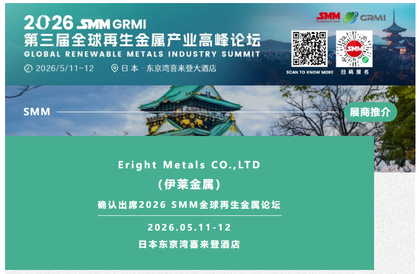 Eright Metals CO.,LTD作为2026年SMM全球再生金属论坛的支持单位,将会在现场与来自全球各地的参会参展企业展开深度且富有成效的交流合作。