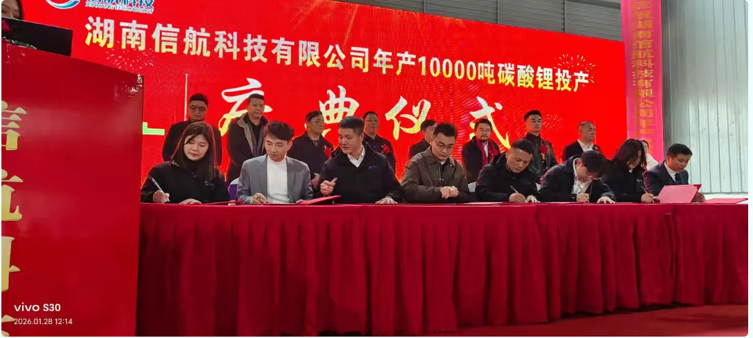 近日,湖南信航科技有限公司年产10000吨碳酸锂项目投产仪式隆重举行,标志着企业迈向高质量发展的崭新篇章!