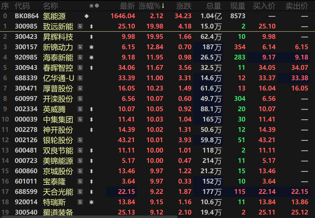SMM 2月4日讯:2月4日,氢能源板块表现活跃,指数盘中一度涨逾2%。个股方面,致远新能、晟辉科技等多股盘中涨停,海泰新能、新锦动力、春晖智控等多股盘中涨逾10%,英威腾、中集集团、神开股份等近8股盘中涨停。