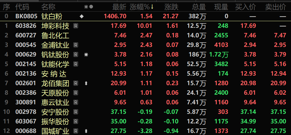 2月4日,钛白粉概念板块出现上涨,截至2月4日收盘,钛白粉概念板块涨1.54%,个股方面:坤彩科技涨停,鲁北化工、金浦钛业、钒钛股份等涨幅居前。此次上涨是1月行业回暖态势的持续传导,叠加多因素共振所致。1月钛白粉行业显现回暖苗头,外贸订单增加带动企业库存环比下降,去化成效显著;硫酸亚铁等辅料价格上行叠加硫酸高位盘整,为成本端提供支撑。1月下旬部分企业率先发布调价函,铺垫2026年涨价预期,叠加海外产能关停引发供应端关注,进一步提振市场信心。尽管行业仍受内贸需求疲软制约,但低估值叠加基本面边际改善,吸引部分资金流向顺周期的钛白粉板块,推动钛白粉概念板块走强。
