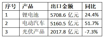 分产品来看,锂电池继续在“新三样”中领跑,2025年中国锂电池出口额达到5708.6亿元,同比增长24.4%。此外,电动汽车出口5160.5 亿元,同比增长51.7%;光伏产品出口2017.8 亿元,同比下降7.3%。