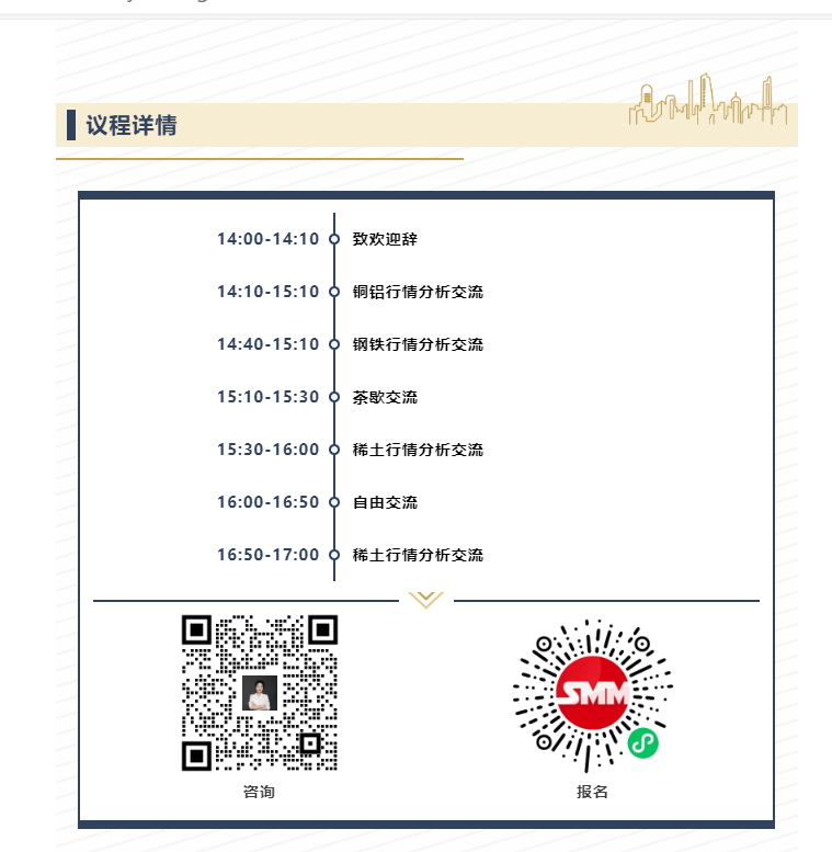 基于这一行业现实,SMM将于2026年4月16日下午,在SMM IEMC 2026(第五届)电机电控产业前瞻大会同期,组织召开“汽车行业金属价格行情研讨会”。会议将依托上海有色网二十余年来在金属矿产领域持续积累的数据体系与研究经验,对汽车产业涉及的核心金属品种进行分析。