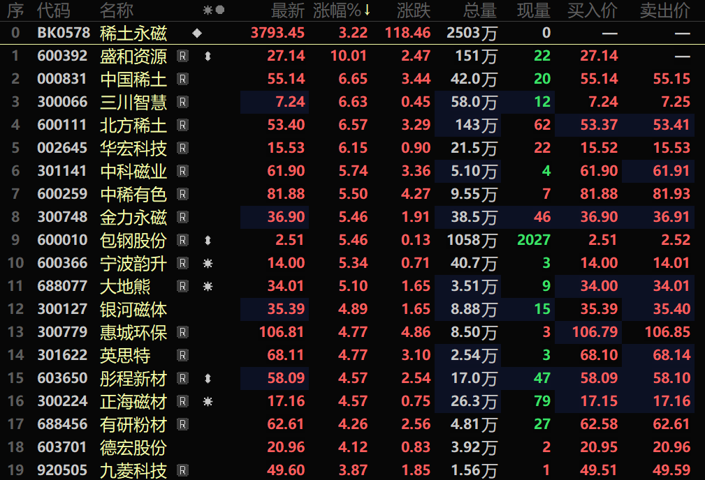 受一分离厂年后停产引发的供应持续偏紧预期、叠加部分磁材大厂积极采购补库等因素支撑,叠加市场对后市看涨情绪持续升温,镨钕市场询盘活跃度显著提升,市场一改往年年底临近假期成交清淡的常态。2月9日,镨钕系品种价格迎来明显上涨:氧化镨钕均价升至805000元/吨,镨钕金属均价升至980000元/吨,二者单日涨幅均超6%!现货市场强势上涨,叠加盛和资源、北方稀土、正海磁材、金力永磁等稀土及磁材龙头2025年业绩预喜等利好带动,稀土永磁概念板块迎来两连涨。截至2月9日13:39分,稀土永磁概念板块延续前一交易日涨势,涨3.22%;个股方面,盛和资源涨停,中国稀土、三川智慧、北方稀土、华宏科技、中科磁业等涨幅居前。